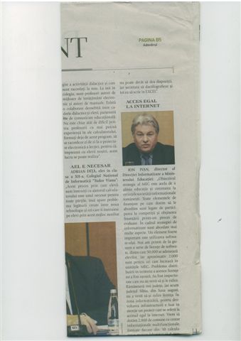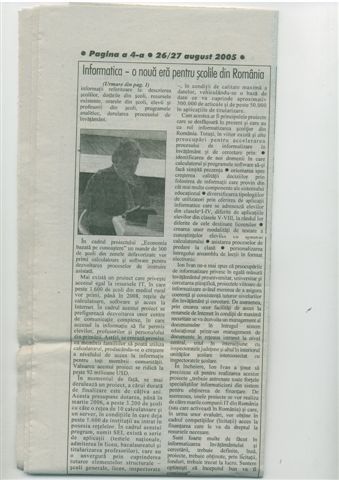 | Interventie in cadrul unui seminar dezbatere cu tem SCOALA ROMANEASCA TREBUIE SA TREACA DE LA CRETA LA MOUSE, organizat de cotidianul Adevarul si publicat in numarul din 19 decembrie 2005 la sectiunea INVATAMANT, pagina B5