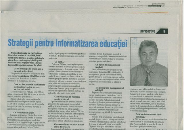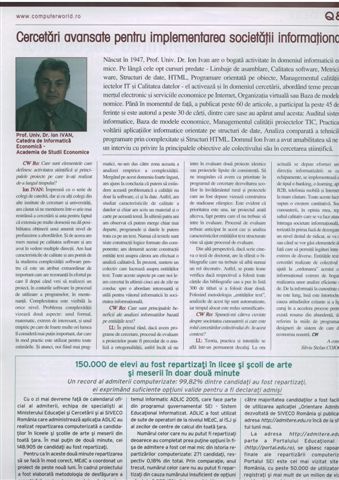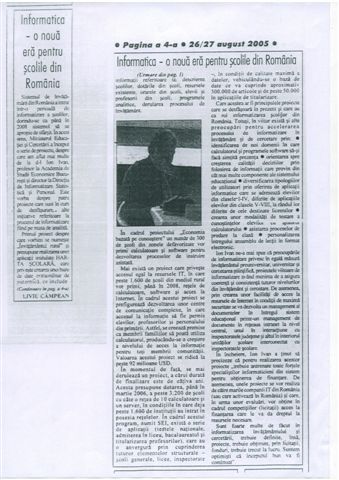 | Interviu aparut in Tribuna Invatamantului nr. 807-808 (2688-2689) 25 iulie-7 august 2005, pg 9