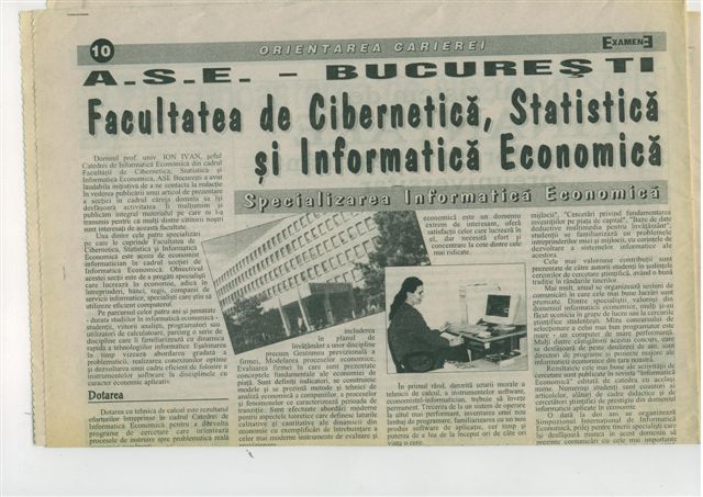 | Prezentarea Facultatii de Cibernetica, Statistica si Informatica Economica in ziarul EXAMENE, nr. 11, 2000