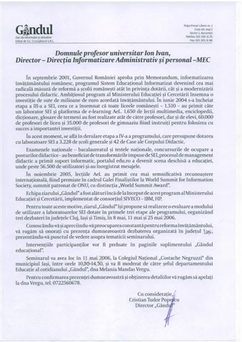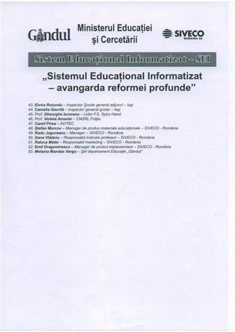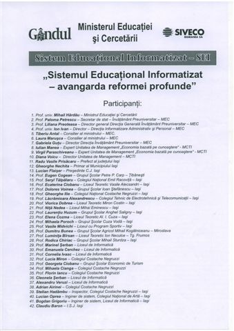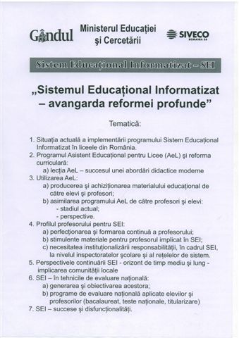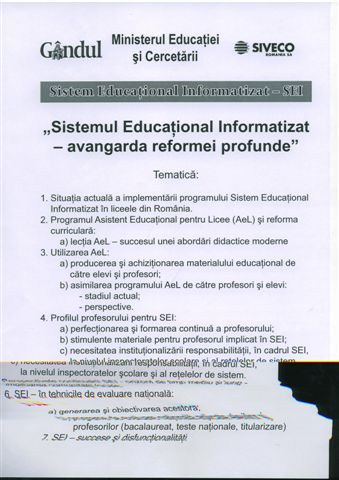 | Seminar organizat de cotidianul Gandul pentru a analiza modul in care se deruleaza procesul de informatizare a invatamantului preuniversitar prin programul SEI