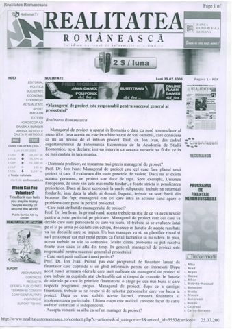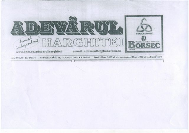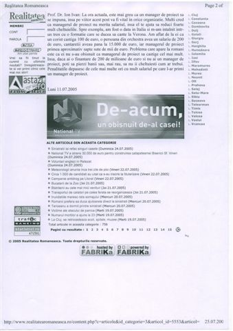 | Articol aparut in cotidianul REALITATEA din 12 iulie 2005, pg. 5