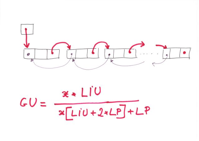 Gradul de utilizare a memoriei GU pentru lista dubla este inferior celui pentru lista simpla, daca informatia utila are tot LIU baiti.