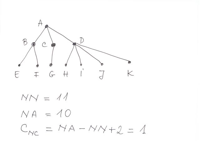 Modelul graf pentru un arbore oarecare conduce la evaluarea complexitatii folosind numarul ciclomatic, la un nivel egal cu 1.