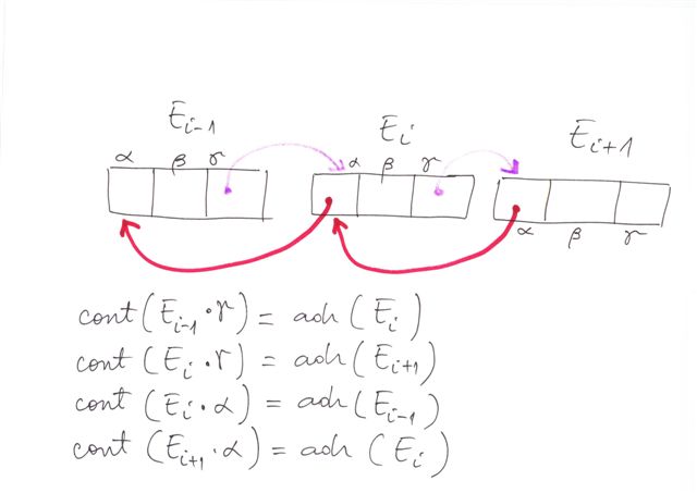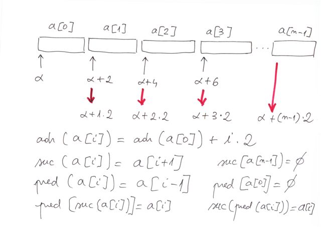 functiile suc() pentru referirea elementului succesor, adr() pentru furnizarea adresei unui element si pred() pentru referirea elementului precedent, evidentiaza faptul ca aceasta structura este omogena si se pot construi formule recursive pentru calculul de adresa si pentru referire.