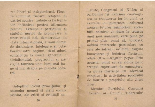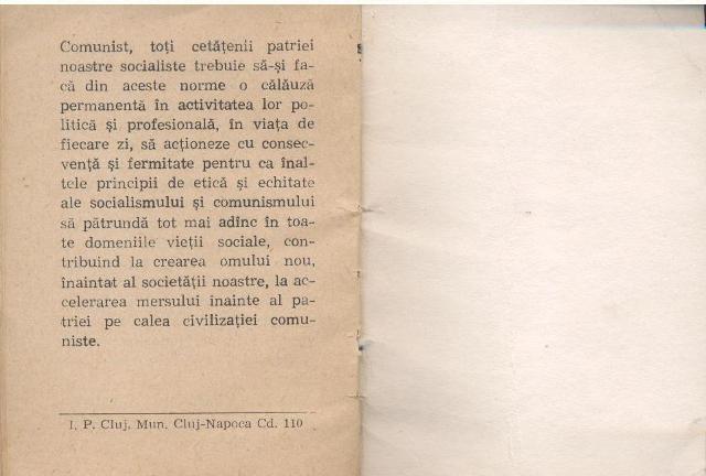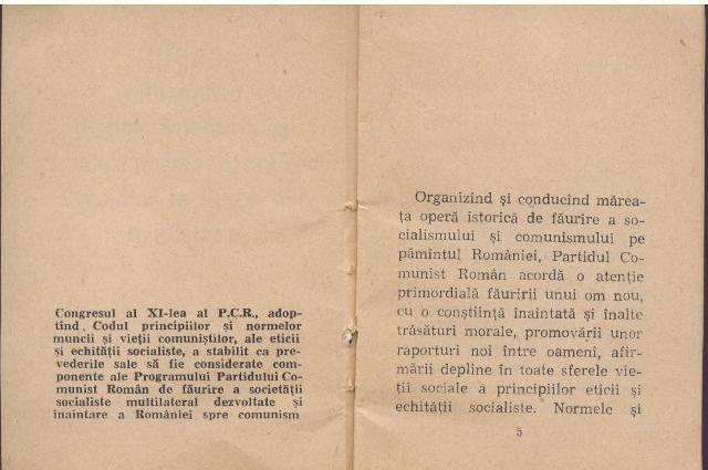 Editura Politica a publicat in anul 1981 CODUL PRINCIPIILOR SI NORMELOR MUNCII SI VIETII COMUNISTILOR, ALE ETICII SI ECHITATII SOCIALISTE