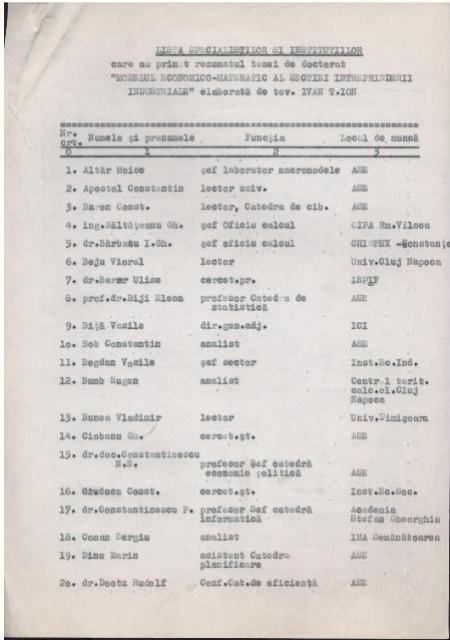 Seful de catedra Bulgaru nu figureaza aici iar seful de colectiv Dodescu, a fost trecut fara voia mea, drept care dupa atatea ani, l-am sters.