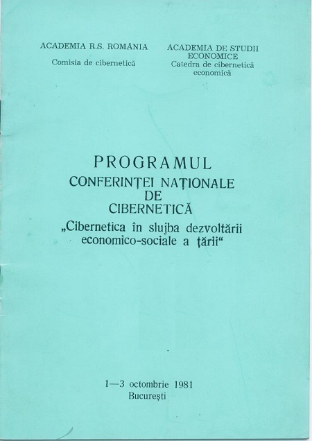 In zilele de 1 - 3 octombrie 1981 s-au desfasurat lucrarile celei de a doua Conferinte Nationale de ciberneica sub deviza CIBERNETICA IN SLUJBA DEZVOLTARII ECONOMICO-SOCIALE A TARII avand zece sectiuni si anume: