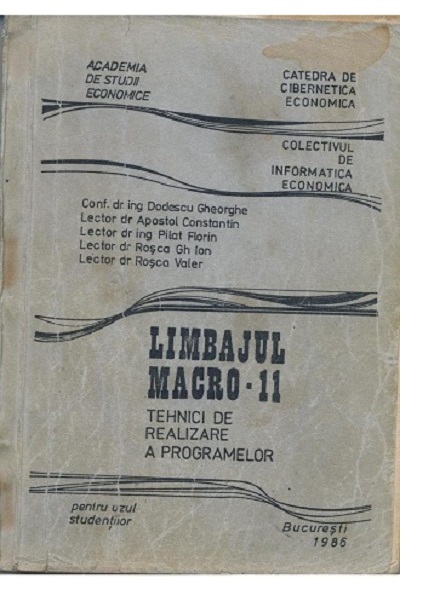 carte de limbaje de asamblare scrisa de gaqbriel Diaconescu si Ion Lungu; lucrul cu liste, stive, arbori erau pentru mine jucarii foarte dragalase invatate de la tata KNUTH; ceilalti colegi au procedat si cu mai multa atentie decat mine, pentru ca asa cum ii stiam lucrau extrem de aplectati la detalii, mai ales daca se are in vedere ca nu se facea niciun pas fara a arata colegilor in sedinte de lucru care au fost progresele realizate; sunt sigur ca si in vremea cand Manea Manescu realiza noua constructie, activitatea de pionierat si entuziasmul de atunci, tot in acest fel ii determinau pe oameni sa lucreze; am amintiri fabuloase despre acele saptamani sau luni, in care discutam si clarificam si porneam la noi etape in zilele ce urmau; seful de catedra Ion Gh. Rosca avea talentul de a nu pleca nimeni fara ca lucrurile sa nu fie clare; odata lucrurile clarificate, nu se mai revenea asupra lor si nici pe la colturi nu se vorbea, pentru toti care aveau ceva de zis, ziceau sa auzim toti; eram o echipa, pentru ca plecarea din vechea catedra s-a facut ca eram impilati, redusi la tacere, depersonalizati si striviti de aberatiile unor sefi nerecunoascatori fata de munca toastra istovitoare de a tine stindardul sus in rulari la computere; numai daca am fi fost apreciati cate cutii cu cartele caram si sunt sigur ca acei sefi ar fi trebuit sa ne faca un grup statuar care sa domine fie Piata Romana, fie curtea interioara din Macedonski sau macar un WC proaspat renovat intre 1999-2003 din cladirea veche;