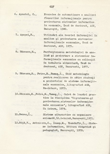 *** - Organizarea si proiectarea sistemelor informationale economice (macheta), Tipografia ASE, Bucuresti, 1982, cd. 226bis, 632pg.