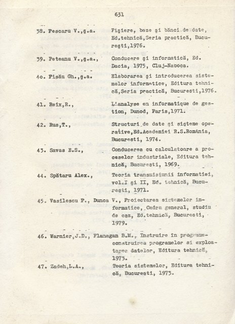 Fara a gresi spun ca profesorul doctor docent Constantin IONESCU este adevaratul fauritor al scolii de APSIE pentru ca: | - a reusit sa inchege un colectiv puternic format din tineri valorosi - a avut o viziune clara in ceea ce priveste punctul final care a trebuit sa fie atins - a dispus de resursele si de tactul necesar pentru a dezvolta un proces de cercetare - a descatusat energii creatoare - a lucrat sistematic pe principii de colegialitate - a abordat totul cu mare flexibilitate fara a respinge ideile valoroase - a dezvoltat o atmosfera propice solutionarii marilor probleme - a definit si realizat un proiect stiind de unde si cu cine pleaca si unde trebuie sa ajunga - a impus seriozitate maxima - a discutat si a controlat tot ceea ce se elabora. Daca este analizata lista de autori se vede ca acolo sunt inclusi atat tineri, cat si specialisti cu vasta experienta, iar dispunerea lor in ordine alfabetica arata respectul care il impiunea profesorul C. Ionescu tuturor colaboratorilor, dar si respectul pe care el il avea fata de acestia, fie ca era vorba de un asistent foarte tanar, fie ca era vorba de un specialist recunoscut asa cum erau Vasile Bita sau Valeriu Pescaru. Analizand bibliografia, se observa ca incepe cu documentele de partid si cu o cuvantare a lui Ceausescu, exact cum erau ritualurile acelor vremuri. Sa nu se uite ca un decan a pierdut fotoliul tocmai pentru ca tolerase ca la o anumita disciplina sa apara cursuri care nu contineau in introducere dar si in bibliografie referiri la documentele de partid si la cuvantari, pentru ca totul se derula sub inteleapta indrumare a politicului. Nici 2+2 nu avea cum sa faca 4 in acele vremuri daca nu era specificat un citat dintr-o glasuire a lui Nicolae Ceausescu. Bibliografie contine lucrari elaborate de specialisti romani, autorii insisi intrducand cate una sau doua lucrari elaborate de ei. Si scoala de la Cluj de informatica este prezenta prin lucrarile lui Teodor Rus si Vasile Peteanu dar si sase lucrari elaborate de I.C.I. stiut fiind faptul ca acolo nu era traditia screrii de materiale de autor, ci publicarea de documentatii, metodologii si ghiduri usor anonime. Lucrarea este elaborata inainte de aparitia internetului si deci nu este poluata de copy-paste si de discontinuitatile preluarilor fara discernamant. Cred ca trebuie si in ziua de azi analizata ca exemplu de cei ce doresc sa elaboreze o lucrare stiintifica sau un manual pentru studenti pentru ca: - tilul are cateva cuvinte cheie - cuvintele cheie se regasesc distinct in capitole - fiecare capitol are la randul lui in titlu cuvinte cheie - subcapitolele au toate elementele legate de ceea ce anbunta ca se trateaza in capitol - conceptele sunt definite si dupa aceea sunt utilizate - formulele sunt construite dupa un tipic in care este specificat indicatorul, apoi expresia analitica, dupa care sunt date explicatiile legate de variabilele independente - sunt incluse si rezultate originale obtinute de autori si care ulterior au fost dezvoltate si publicate in teze de doctorat. Oricare dintre capitole este analizat, se vede: - seriozitatea structurarii - nivelul de profunzime al abordarii - coerenta succesiunii subcapitolelor - controlul redundantei - asigurarea consistentei in raport cu celelalte parti - dezvoltarea graduala. Capitolul al XII-lea este destinat implementarii, exploatarii si mentenantei sistemului informational nou, de la paginile 567 - 589. Exista doua subcapitole, primul destinat implementarii si al doilea trateaza la pachet exploatarea si mentenanta. Cine ar scrie acum acest capitol, cu siguranta ar structura demersul pe trei subcapitole si ar face un sablon in care sa asigure tratarea omogena a implementarii, exploatarii si mentenantei. Numai ca in acele vremuri, lucrurile stateau cu totul altfel, mentenanta fiind un vis frumos dar prea indepartat. Exploatarea era aproape implicita, intrucat nu era separat dezvoltatorul de sistem de cel care il exploateaza, totul fiind o simbioza si un proces de asistare permanenta pentru ca prelucrarea la distanta nu exista decat in imaginatia foarte multor informaticieni, iar despre realitatea virtuala se stia din literatura lui Jules Verne, cartile acestuia aparand in editii frumos copertate in alb. Lucrarea este rezultatul unui efort extraordinar al autorilor si numeroasele scheme, tabele, grafice si figuri, arata preocuparile acestora de a sintetiza si mai ales de a face prezentari clare si sugestive. Cartea pe care o am la dispozitie a fost a unui student care a subliniat ceea ce era mai important. Am reciti acele fraze subliniate de student si mi-am dat seama ca ele includ elemente esentiale, indispensabile unui viitor specialist si sunt asemeni unor definitii, exact cum au juristii mici zicei in limba latina, care ei le numesc principii de drept roman. Cred ca daca cineva va avea rabdarea sa reediteze aceasta lucrare, va pune la dispozitia specialistilor dupa mai mult de trei decenii o lucrare poaspata, de mare actualitate, desi in IT&C uzura morala este dramatica. |