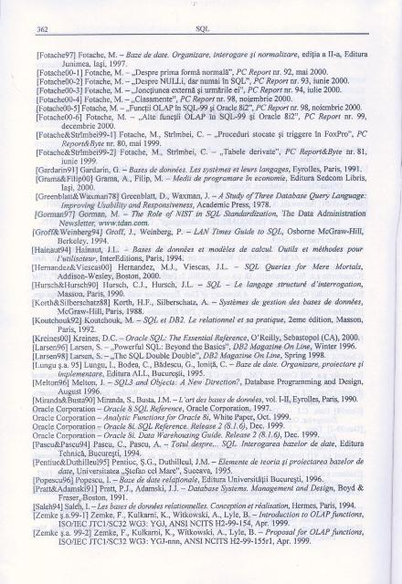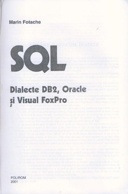 Marin FOTACHE - SQL, Dialecte DB2, Oracle, Visual FoxPro, Editura POLIROM, Iasi, 2001, 366pg, ISBN 973-683-709-2