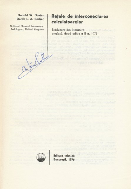 D.W. DAVIES, D.L.A. BARBER - Retele de interconectarea calculatoarelor, Editura Tehnica, Bucuresti, 1976, 643pg.