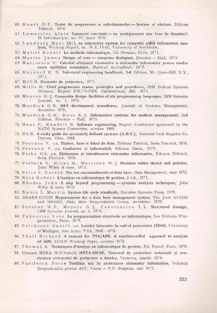 Petre VASILESCU, Victor DUNCA - Proiectarea sistemelor informatice, cadru general, studiu de caz, Editura tehnica, Bucuresti, 1979, 324pg