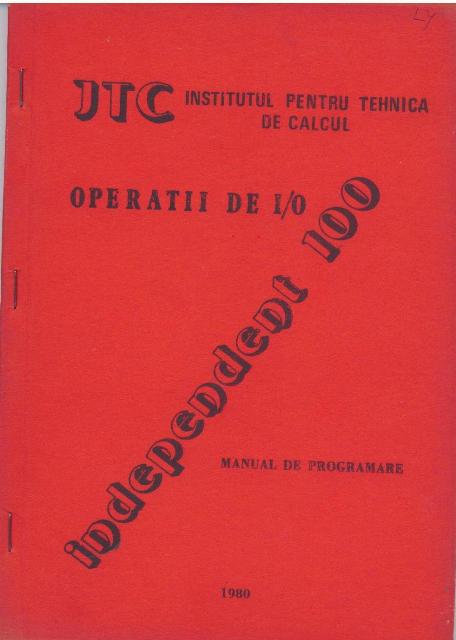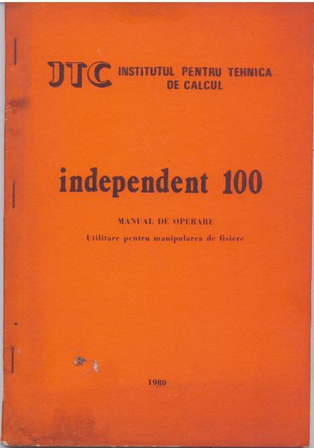 La ITC Bucuresti au fost elaborate documentatii sub forma unor manuale, la nivelul anului 1979, legate de sisteme de operare, prezentarea calculatorului Independent 100 prin manual de programare, utilizare si operare, prezentarea produselor software disponibile. Autorii manualelor erau specialisti din ITC, precum Aurel Becea, Nicolae Manea, Aurel Dobre, Aneta ipeanu, Marcel Popescu, Saftica Zainea si altii.