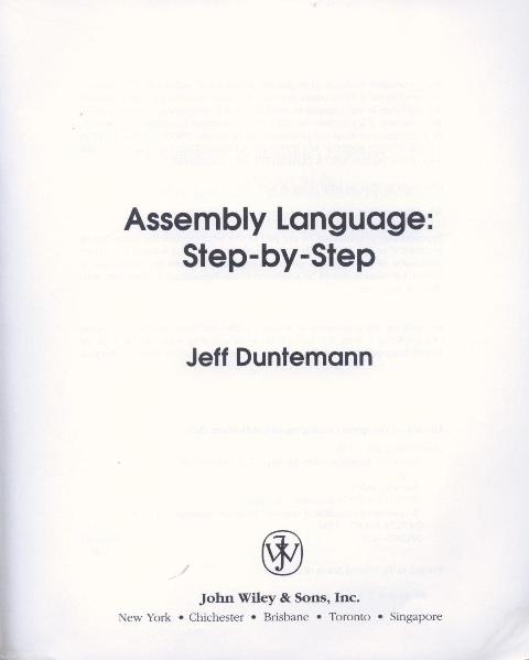 Jeff DUNTEMANN - Assembly Language: step by step, John Wiley&Sons Inc., New York, 1992, 432pg, ISBN: 0-471-57814-2