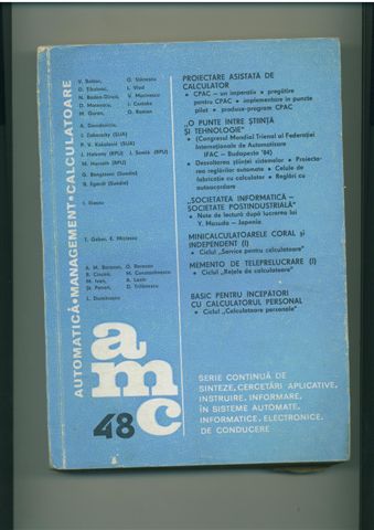 | Revista periodica Automatica-Management-Calculatoare, ajuns in 1985 la volumul 48, prin diversitate si prin continut au avut rolul de a aduce cititorului cele mai noi cunostinte din informatica. Studii de mare amploare, solide si cu documentare profesionala au abordat probleme de software si de hardware sau au dezvoltat teme dominante la mari manifestari stiintifice ale vremurilor.