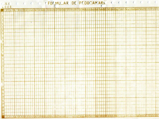 pe care se scriau 20 linii sursa de cod, fiind folosite de catre operatorii care perforau pe cartelele cu 80 de coloane aceste linii de cod.