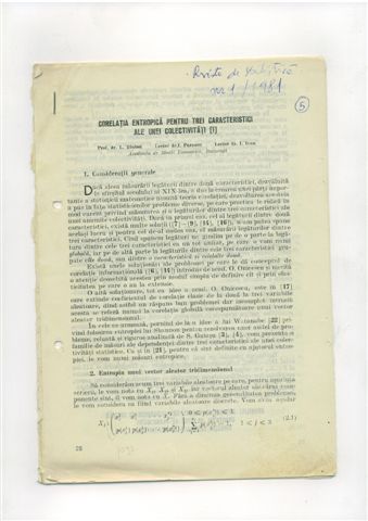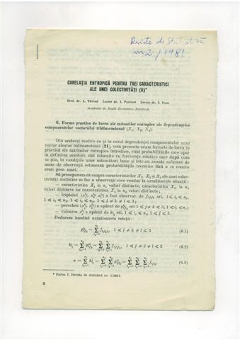 | Ludovic TOVISSI, Ion PURCARU, Ion IVAN – Corelatia entropica pentru trei caracteristici ale unei colectivitati, Revista de Statistica, nr. 2 si 3, 1981, pg. 28 – 37, 6 – 13
