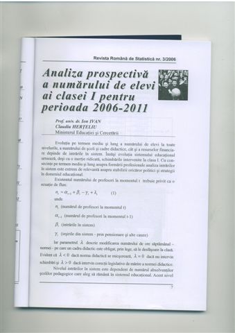 | Ion IVAN, Claudiu HERTELIU - Analiza prospectiva a numarului de elevi din clasa intai pentru perioada 2006 - 2011, Revista Romana de Statistica, nr. 3, 2006, pg. 7 - 20. 1977