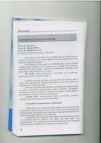 Ion Ivan, Marius Popa, Mihai Sacală, Ortogonalitatea datelor, Revista Română de Statistică, anul XI, nr. 4, 2002, pg. 30 - 45
