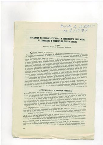 Ion IVAN, Utilizarea metodelor statistice în construirea unui model de conducere a proceselor dintr-o secţie, 1977, Revista de Statistică nr. 8, pg. 26 – 32