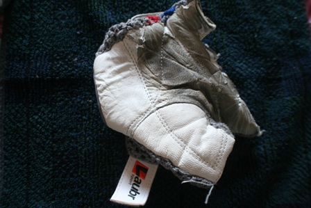 | Manusa din stanga s-a deteriorat pentru ca stratul care acopera pielea naturala este prost depus, fara a se respecta cerintele. El a devenit numai o pelicula care se detasaza de piele si la cea mai mica frecare se desprinde de pe piele.