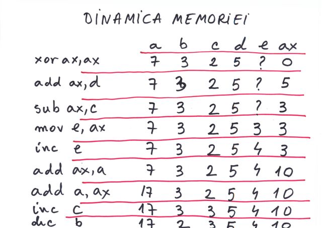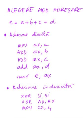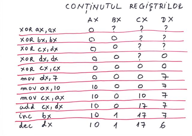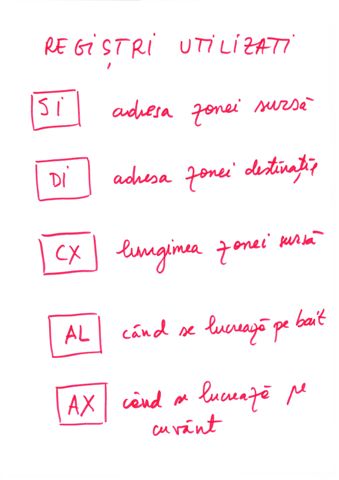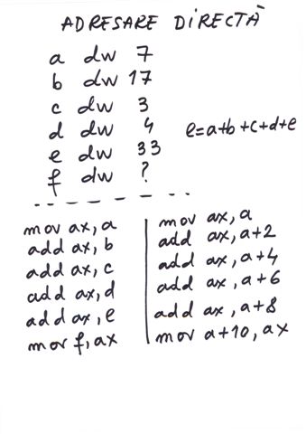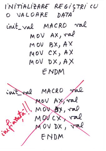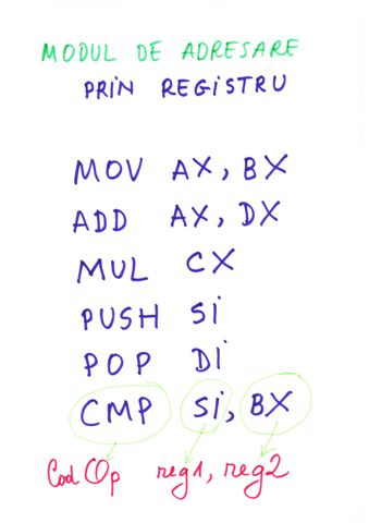 | Referire registri | prin nume AX, BX,CX,DX,SI,DI | prin tipul de data definit |