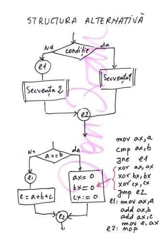 | Instructiune alternativa multipla | relizata cu o succesiune de instructiuni CMP si salturi conditionate | switch() |