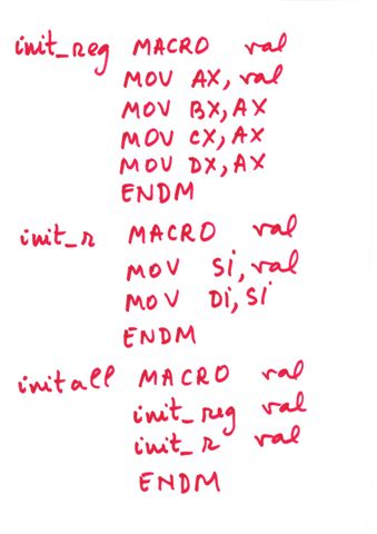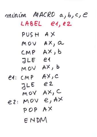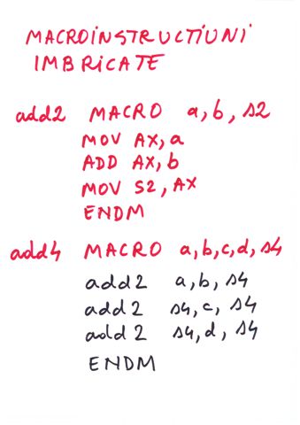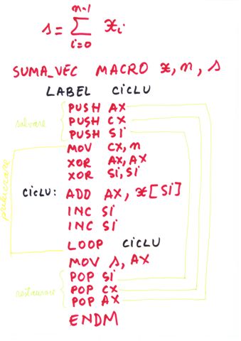 | Delimitator sfarsit de bloc | ENDP, END, ENDM, ENDS | } |
